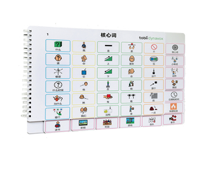 沟通册按照6x6的网格大小设计,包含12张沟通板,其中6张为通用沟通板,6张为特定的场景主题,共计300个常用的沟通词汇,满足生活及教学所需。
